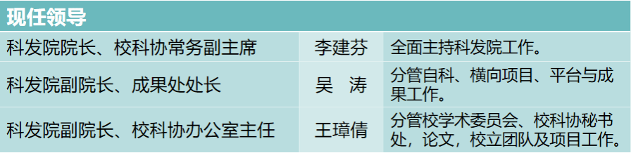 负责科发院内部事务、内外联络和接待、综合协调等各类综合行政事务;负责各级各类科技统计、校内科研奖励绩效工作组织;统筹科发院财务、资产、保密、工会等工作。